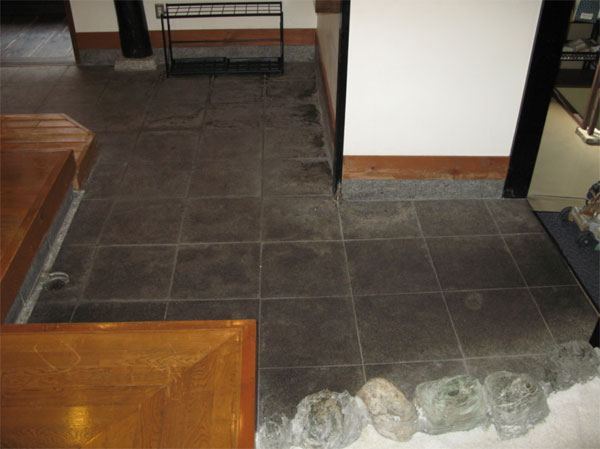コンクリートと御影石で出来た床に油が染みこんでいました。