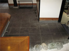御影石の油除去と染み抜き作業です。 バイオ洗浄と染み抜き作業の2工程で施工しました。